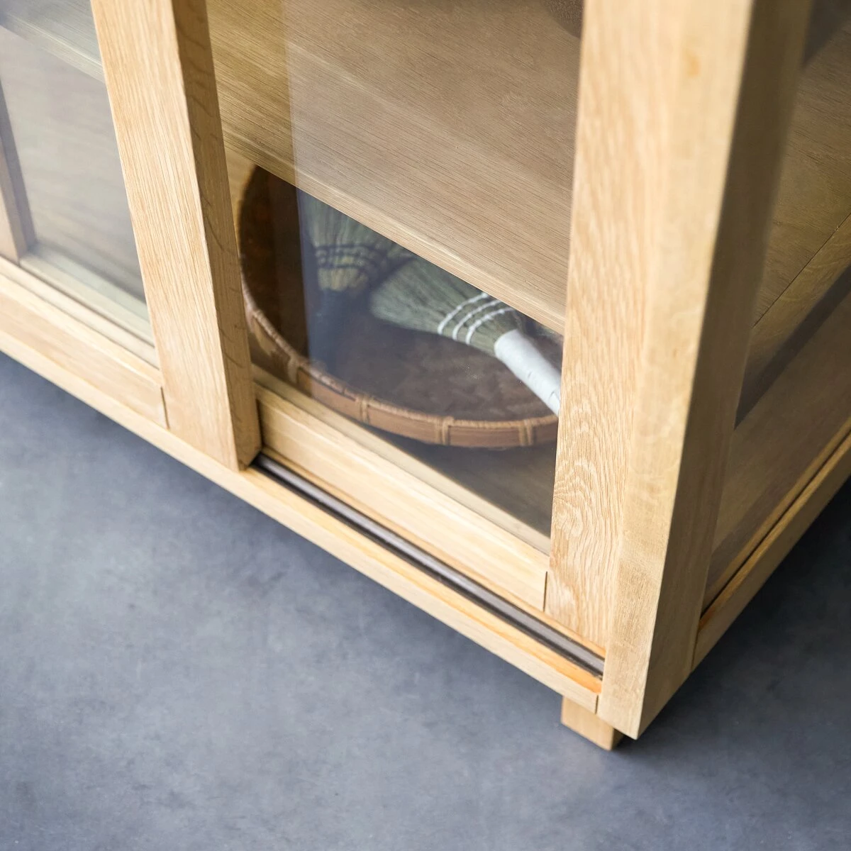We like the back covered with canework, a sought-after, natural material in contemporary interiors. We’re also big fans of the sliding doors that optimise your space because you don’t need to leave room for open doors… not to mention the practical drawers and the pale golden colour of the wood that make it so versatile. Varnished finishes