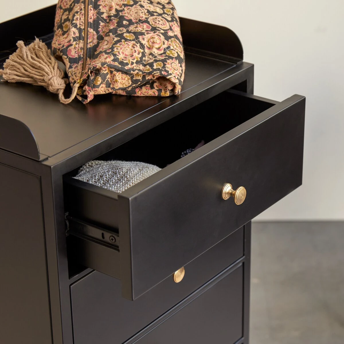 A little detail for parents: the Anika 5-drawer metal chest of drawers is a great match for our
