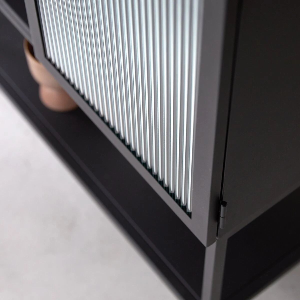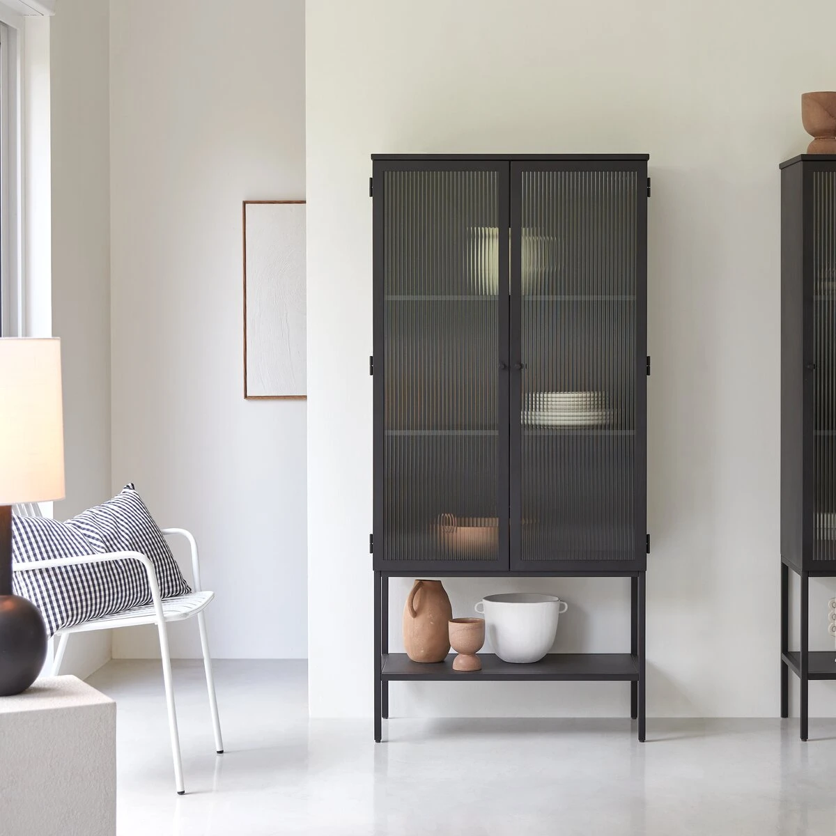 The Antonin metal display cabinet is inspired by industrial design and looks as if it’s straight out of an early twentieth century workshop: with the same minimalism, materials and practicality! This display cabinet is a beautifully made classic, combining smooth metal protected by a powder coating that does not detract from its clean lines, and opaque tempered glass that leaves you to wonder what’s inside without fully revealing the contents: the result is a stylish piece of furniture, full of personality. It’s just right for the dining room to organise crockery and table linen, it is also a boon in the living room for storing sweet and savoury treats, glasses, bottles… in short, everything you need for great times with friends and family. In the bedroom, it can be used to store bed linen or folded clothes and in the bathroom, towels and cosmetics. Note the shelf at the bottom where you can display decorative objects, the doors which remain firmly closed via carefully placed magnets and the discreet handles.
