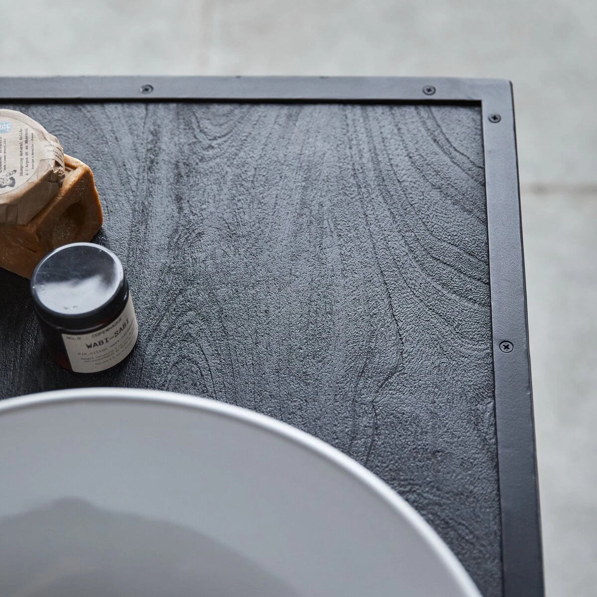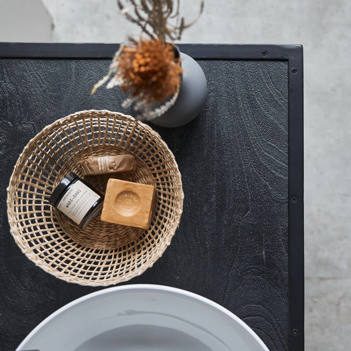 The Arsène metal and solid mango vanity cabinet 90 brilliantly combines and a great mix of materials. You’ll love the perfect combination of the lacquered mango top and the black metal cabinet. You’ll also appreciate its industrial spirit – a style currently popular in the home, including for bathrooms.