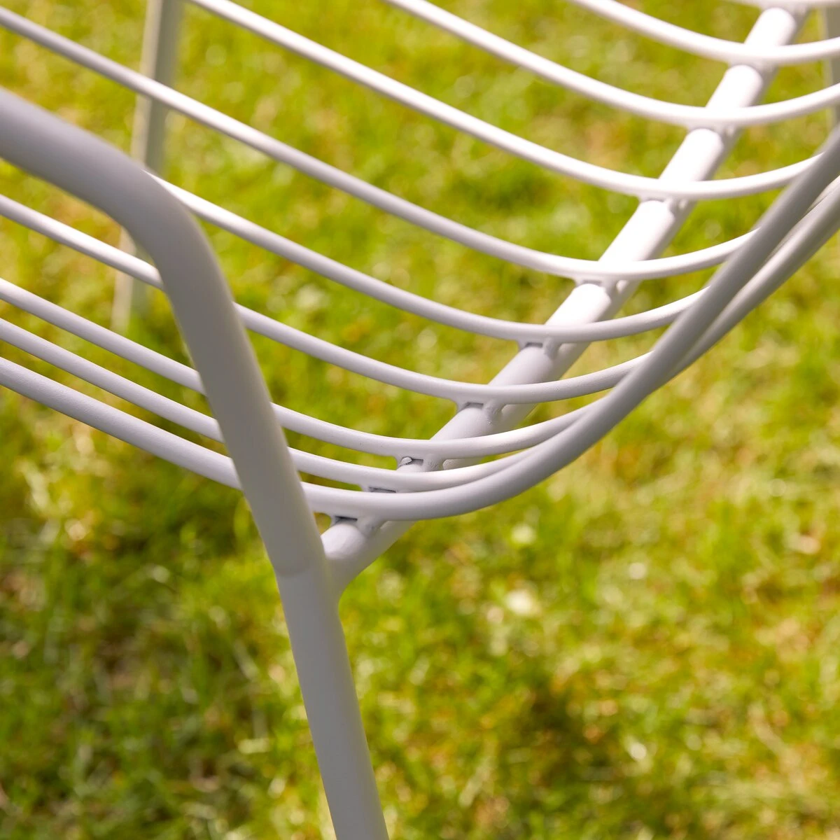 The Arty white metal garden armchair combines industrial style and sleek, modern design. These characteristics make it an excellent addition to any fashionable garden space.