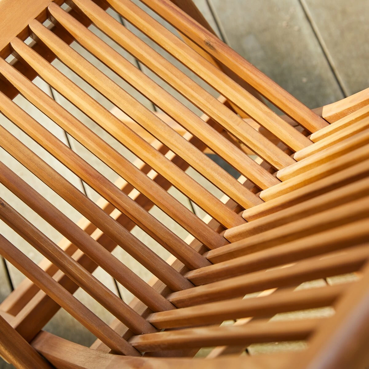 You’ll love the timeless appeal of our set of 2 Capri garden chairs in solid acacia. Made of a (pre-oiled) wood that is renowned for its weather resistance and is FSC®certified (guaranteeing that it comes from sustainably managed forests), these chairs have a slatted design that is very popular in contemporary settings. Note the golden reflections of the wood, which will brighten up your garden or patio and looks good with all sorts of styles. Ideal with our matching Capri , these chairs can also be combined with tables made from other types of wood or other materials for a successful mix-and-match effect!