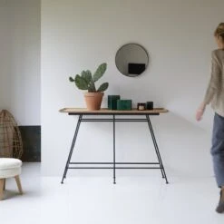The Ema metal and teak console table is a wonderful example of … you don’t have to think twice about mixing and matching it with pieces from to give your home even more personality!
