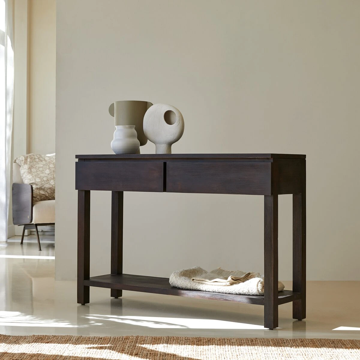 The Eva Biti console wenge FSC® certified is great anywhere in the home. In the living room, in the entrance or the office … it is perfect for presenting , plants or books.