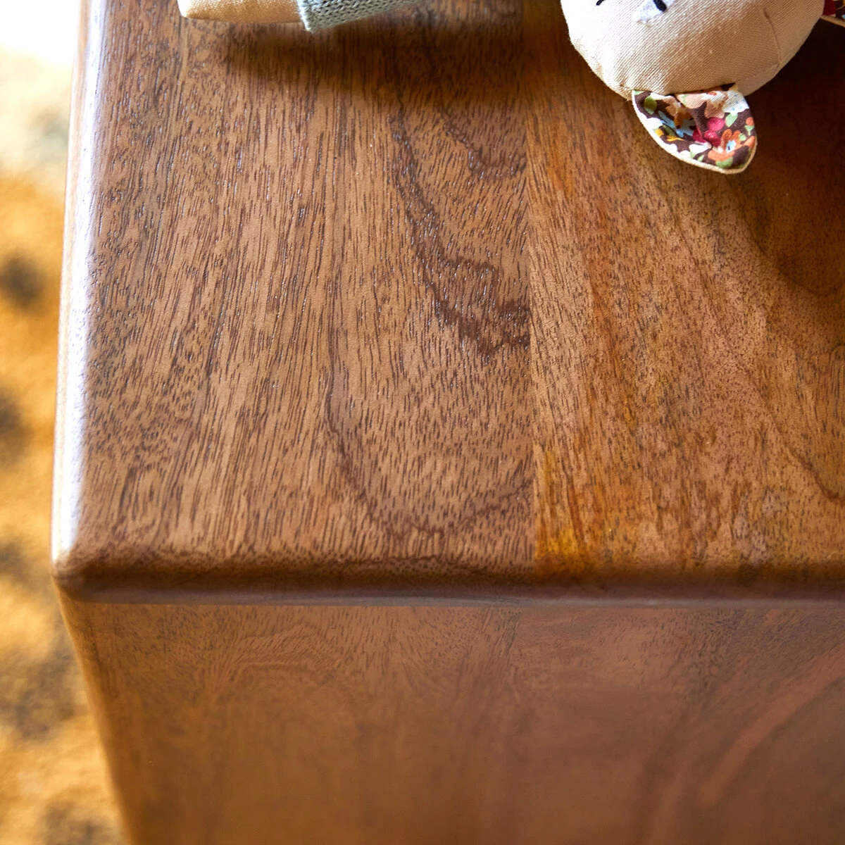 The mango tree is distinctive and robust, offering a wide range of tones and a visible grain. It is very dense and is considered to be a hardwood, so it is solid and resistant. The mango tree is a model of environmental protection: it is only exploited once it has reached maturity.
