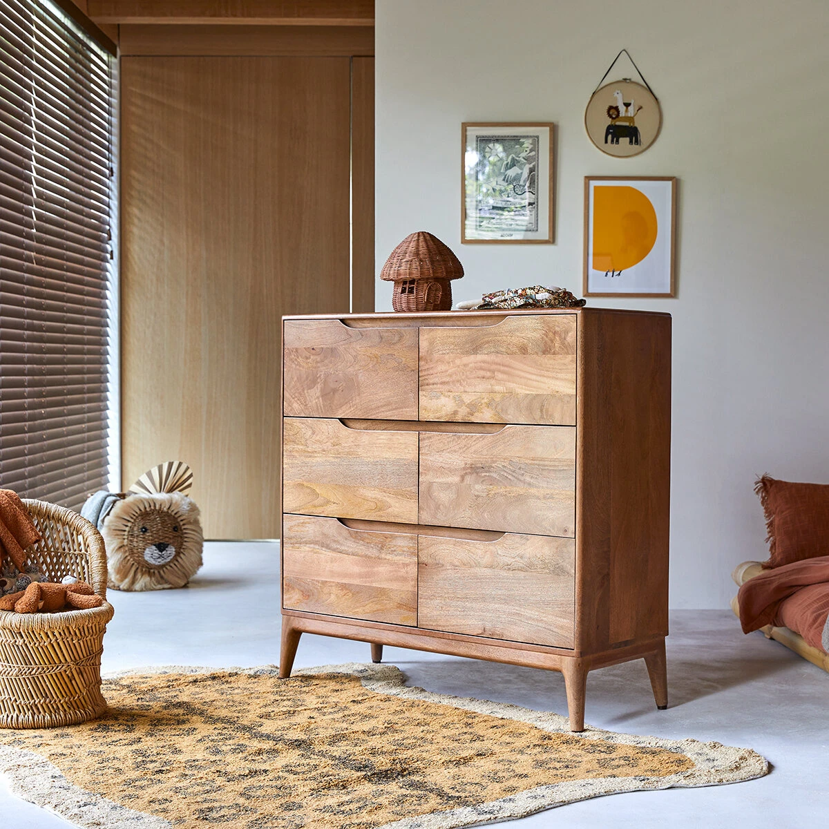 Learning to tidy their own clothes clothes or toys away in the Gabrielle solid mango wood chest of drawers is like exploring a new world. The exotic design takes the child on an imaginary journey where there’s a very fine line between dreams and games. The six drawers are easy to open and close for small hands and offer the perfect space to keep everything neat and tidy.