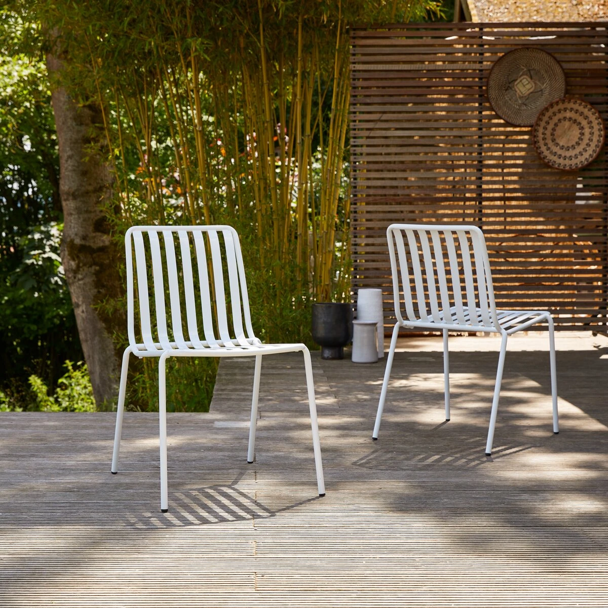 Clean lines and workshop inspiration characterise the Gaby white metal garden chair. Ideal on the terrace or , it can be paired wit to stunning effect in a contemporary mix and match style.