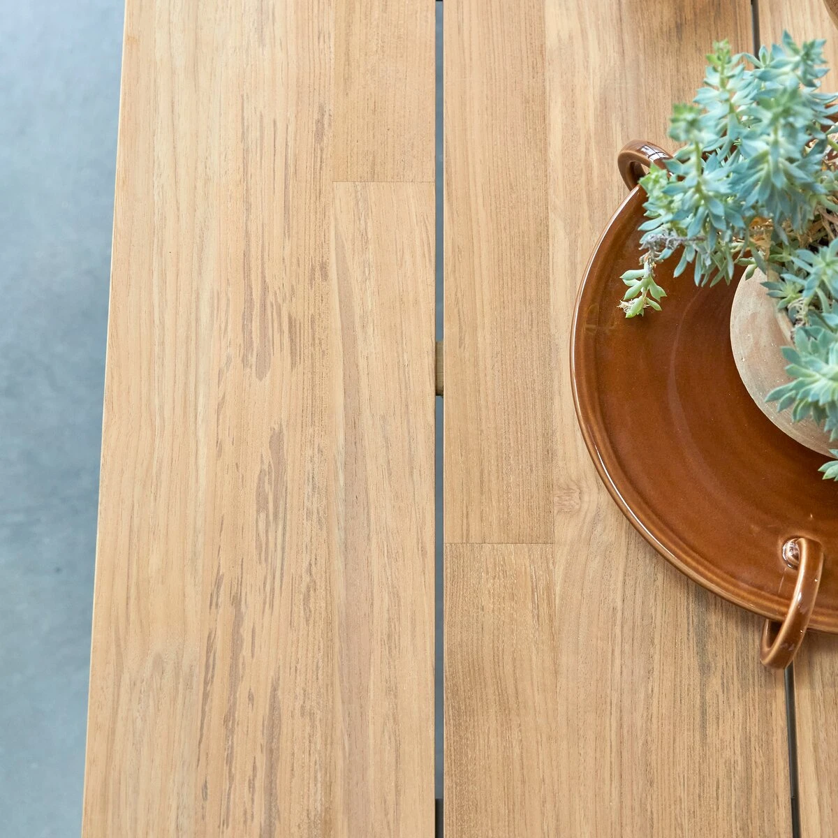 The Harper solid teak and aluminium table: a premium piece of furniture that combines industrial inspiration and contemporary elegance. We love the very high quality of its materials, the finely crafted finishes, the minimalist lines and its strong personality. Note the FSC® certification, which guarantees that the teak comes from sustainably managed forests.