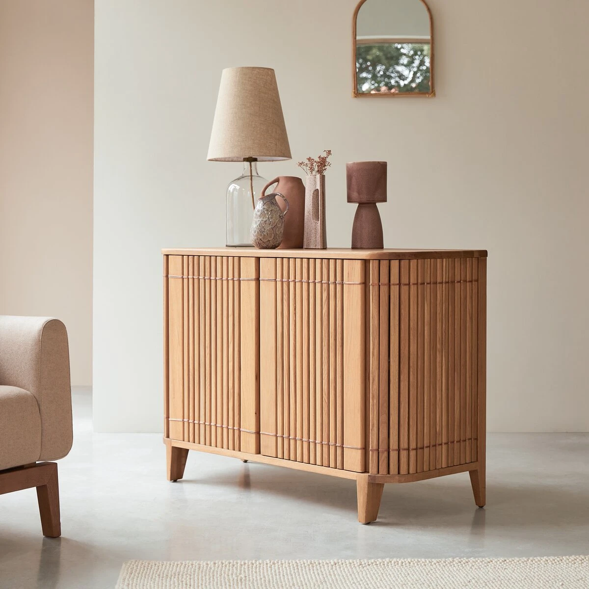 In the sitting room, in the dining room… even in the office or the bedroom, the Koppar oak sideboard 115 offers stylish storage for crockery, household linens, clothing… A piece of furniture that’s a pleasure to share your everyday life with!
