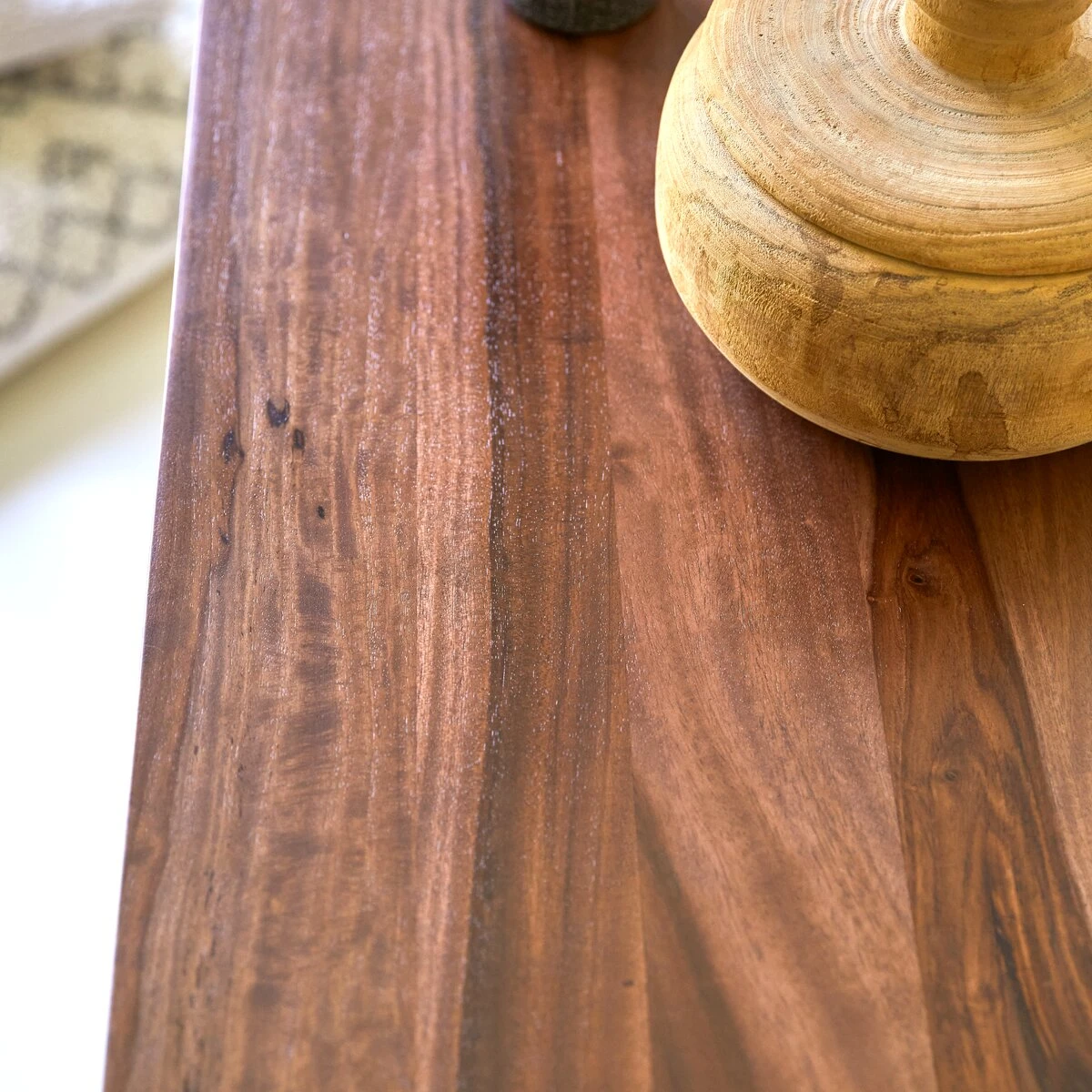 The Nova solid sheesham sideboard: with its clean lines, great storage capacity and superb wood with beautiful veining, it has everything you could wish for! This sideboard is very generous in terms of space and will enable you to organise all your tableware and table linen: the large drawers allow you to see at a glance what they contain. Note the beautiful understated design and the elegant stainless-steel base, which can be mounted with four clips and provides a contrast in the volumes.