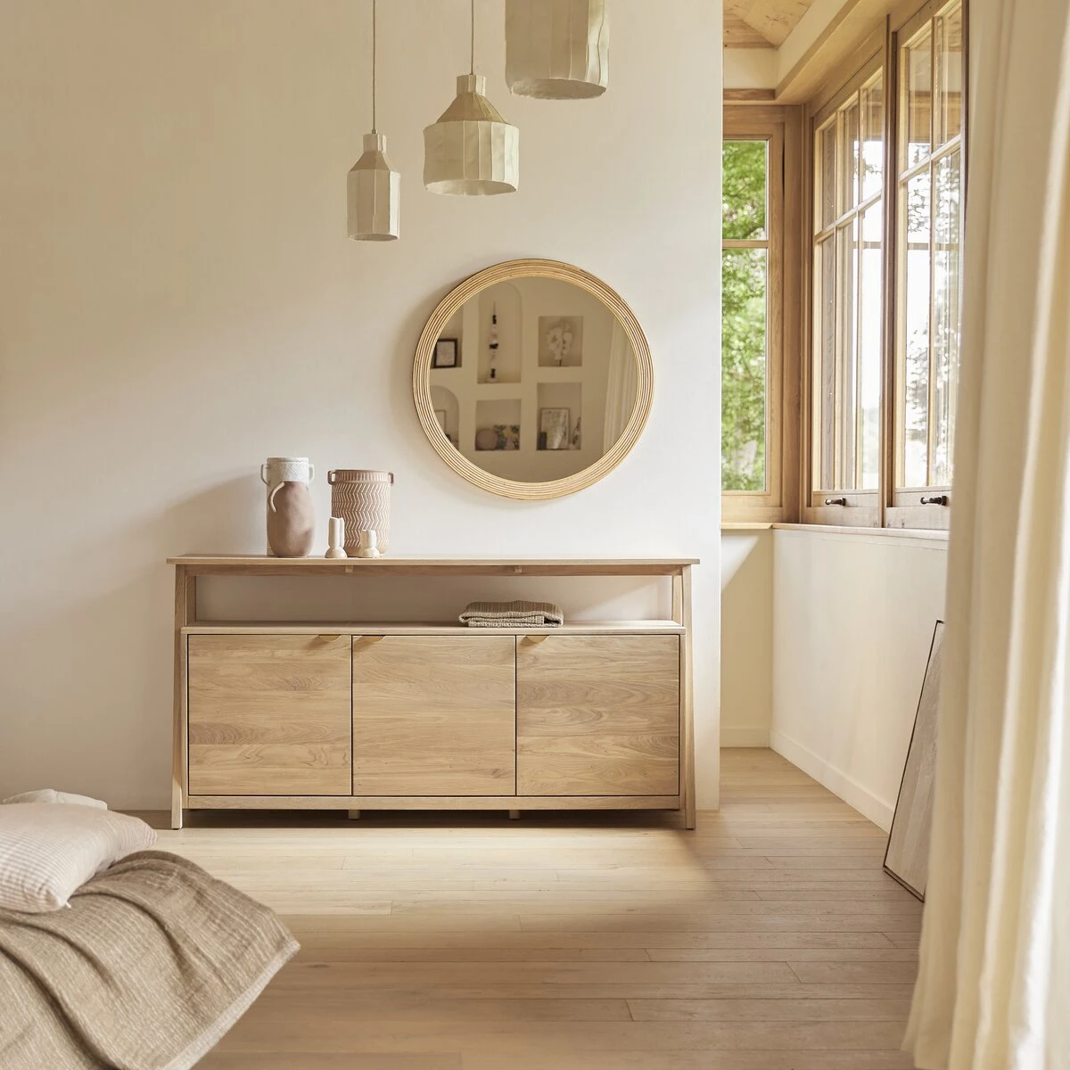 Crafted in pale solid oak, it has plenty of storage capacity and can be paired with any style of decor: its understated lines make it incredibly versatile!