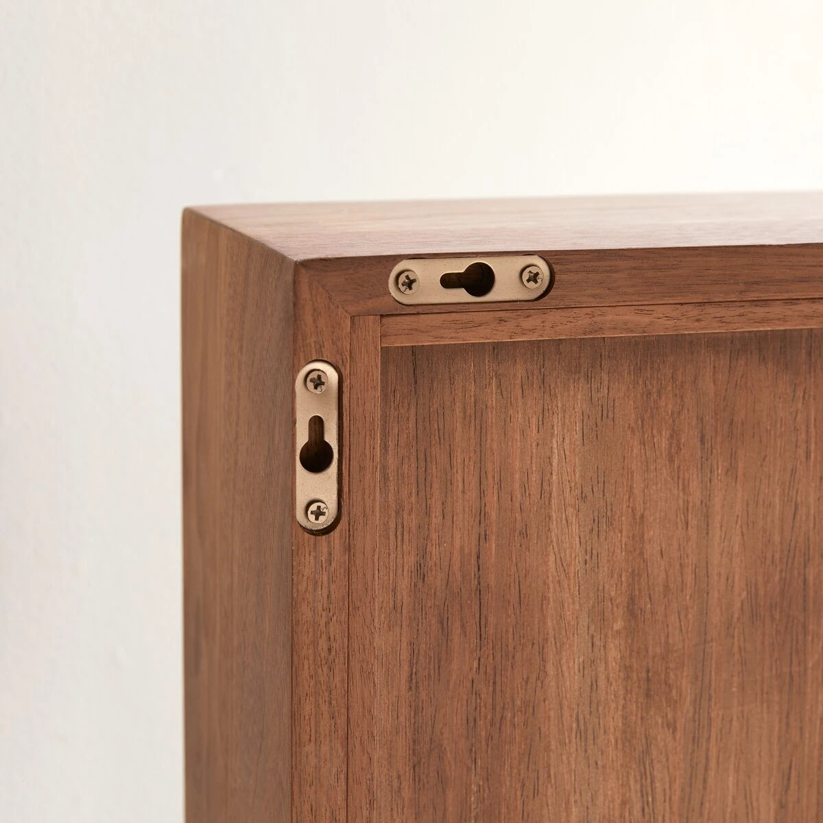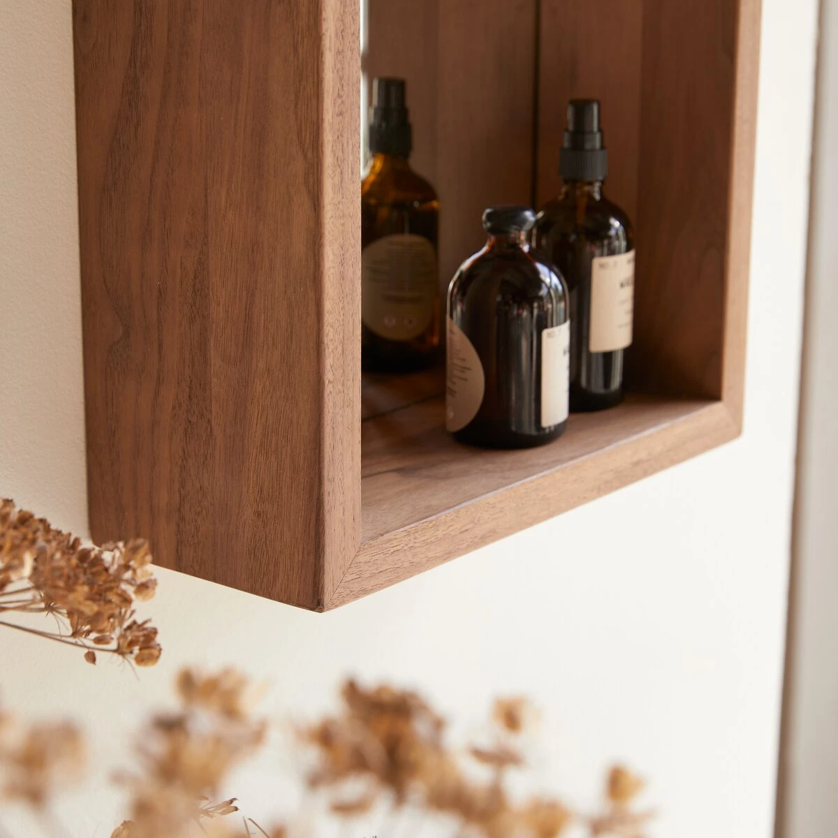 The Stelle walnut mirror is a perfect complement to the other pieces in our Stelle bathroom collection. It is also perfect for placing in other rooms of the house! Very practical, it has a deep frame, on which you can place a few beauty products or small decorative elements or play with proportions. We love its fine wood, which is pre-oiled to resist splashes and FSC® certified, guaranteeing that it comes from sustainably managed forests.