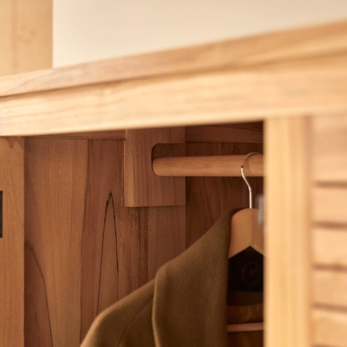 Charm and elegance combine itn the Suzette teak FSC® certified wardrobe. Natural solid wood lovers will appreciate this beautiful piece of design and craftsmanship. Equipped with plenty of storage space, it is ideal for storing your clothes and other linens. The fine lines of the design combine with warm teak wood to produce an overall appearance of class and refinement. For more of this natural teak look in your home take a look a our full teak ranges: , , …