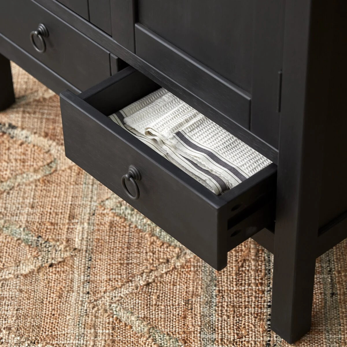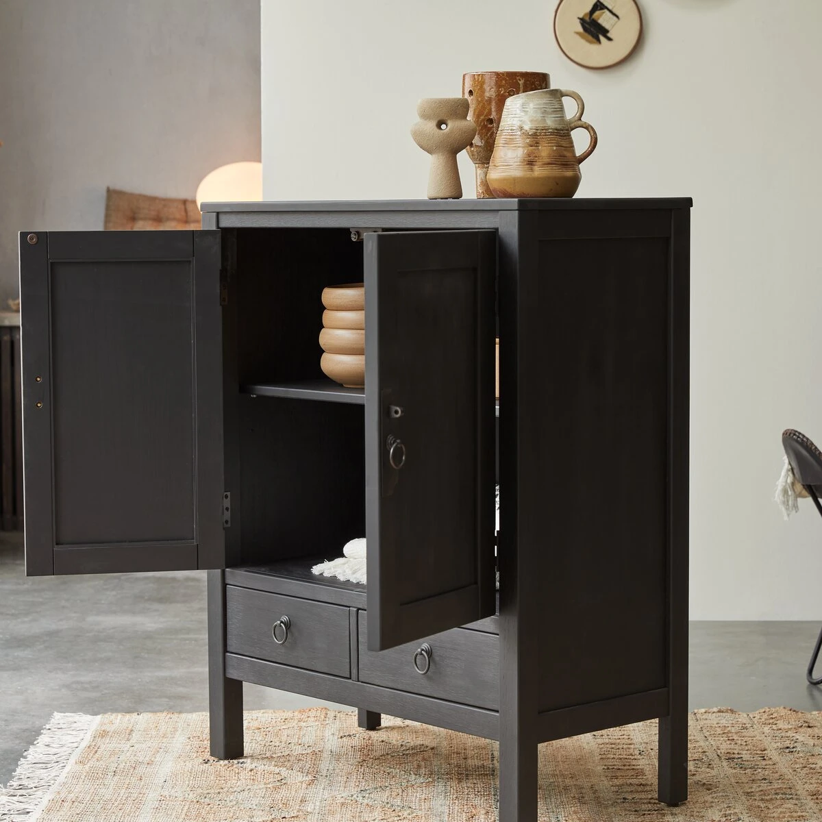 The Thaki Black solid pine cupboard is FSC® certified, guaranteeing that the wood comes from sustainably managed forests.
