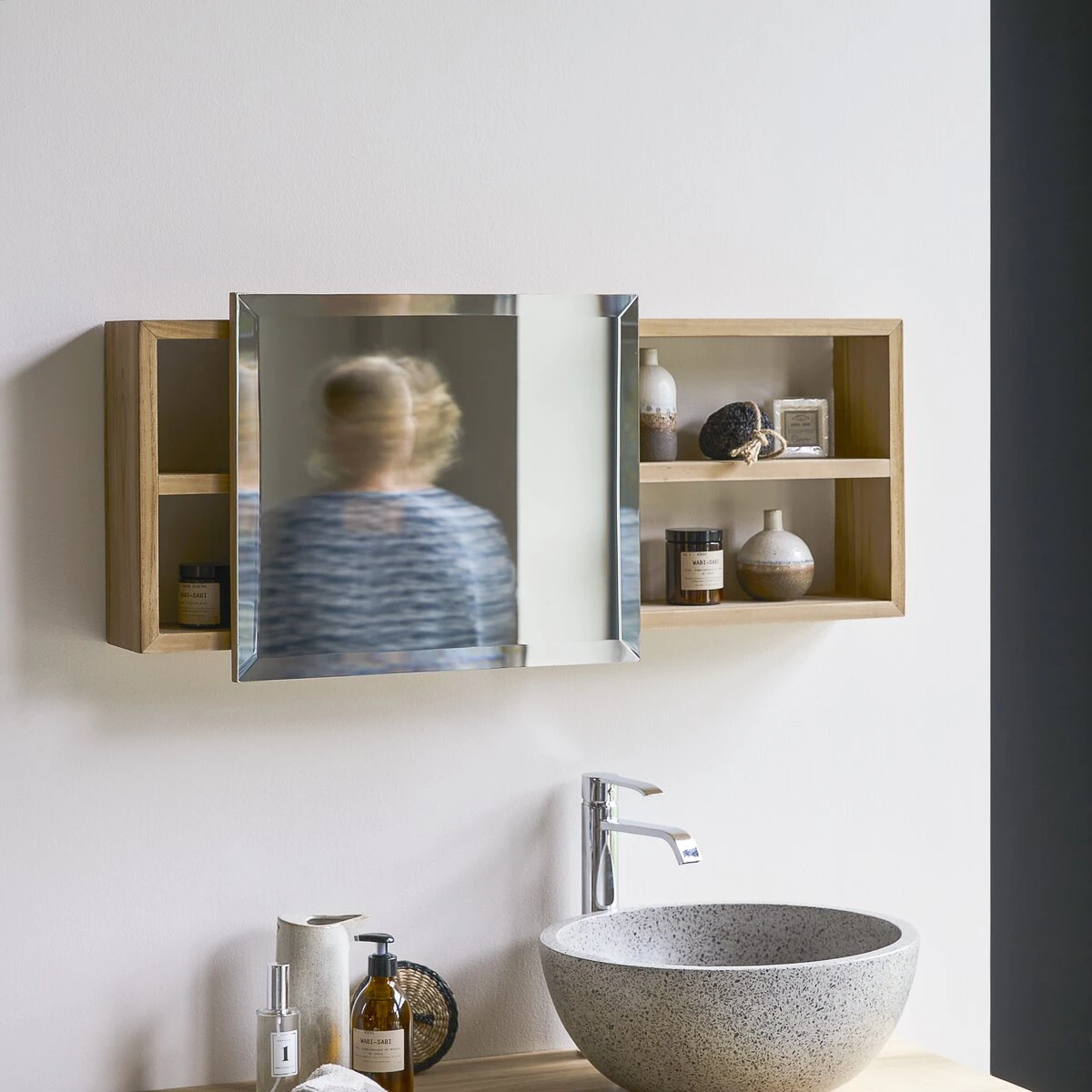 Treat yourself to this , with solid teak FSC® certified cabinet. This is a practical and piece, with its storage shelf unit and sliding mirror, providing space for you to optimise the organisation of .